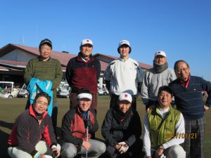 役員のアテンドが入ってドタキャンせざるを得なくなった会員、参加連絡したつもりになっていた参加希望者(2回連続の常習犯)、当日朝の腹痛・下痢で断念した会員などがいて、開催直前になって参加人数の増減が激しいコンペとなりましたが、寒中ゴルフにもかかわらず9名・3組で競いました。