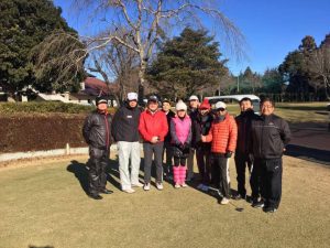 2017年1月15日、新年打ち初めの54らゴルフ会が玉造ゴルフ倶楽部若海コースで行われた。意気揚々と10人の志士が参加。しかし、大寒波到来!とのことで、天気は快晴ながら事前のパット練習でも凍ってる滑ってる・・・。この先どうなることやらと、初心者の私でも先の不安が広がる状況でスタート。案の定、前半はナイスオン!のつもりが硬いグリーンに弾き飛ばされオーバーの連続。バンカーがカチカチ、まるでコンクリート上のようで寄るはずもなく。昼近くになると日差しも増して、絶好のコンディションに。それがプレイに反映されないのも54らの良いところ。和気あいあいの気楽なふわふわの雰囲気のままに前半が終了。