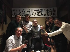 プレイ後は当然のことながら最寄りの石岡駅付近の居酒屋へ。こちらも寺内さんの紹介で、あの「グッチ裕三」プロデュースのメニューを堪能。しかし、驚いてはいけません。なんとわれわれの個室に「54ら会コルフコンペ」の横断幕あり!寺内さんとお店の粋な計らいにここでも感謝。残念ながら,酔っ払ったわれわれがうまく剥がしきれずに破いてしまい、持ち帰りはできませんでしたが。