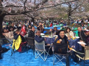 春爛漫の「花の宴」を今年も2017年4月2日の日曜日に井の頭公園西園で挙行しました。今回で3回目となる「花見宴」ですが、今年も晴れ渡った青空の下、五分咲きの花が七分咲きに開く様子を54ら21名が4時間堪能しました。