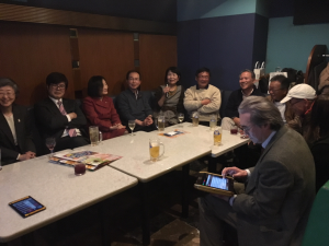 忘年会は有志の合唱から開始。「校歌」三重唱は聞き応えがありました。飲み放題の着席ブッフェ懇親会は、歓談のみならず、「元学生、注目!」とばかりに元気な還暦超えの主張も有り、生涯青春を標榜する54ら会(ごじらかい)らしい進行でした。過ぎゆく時間はあっという間で、別れを惜しみつつ、再会を期待しつつ、54らたちは師走の街へ散っていきました。
