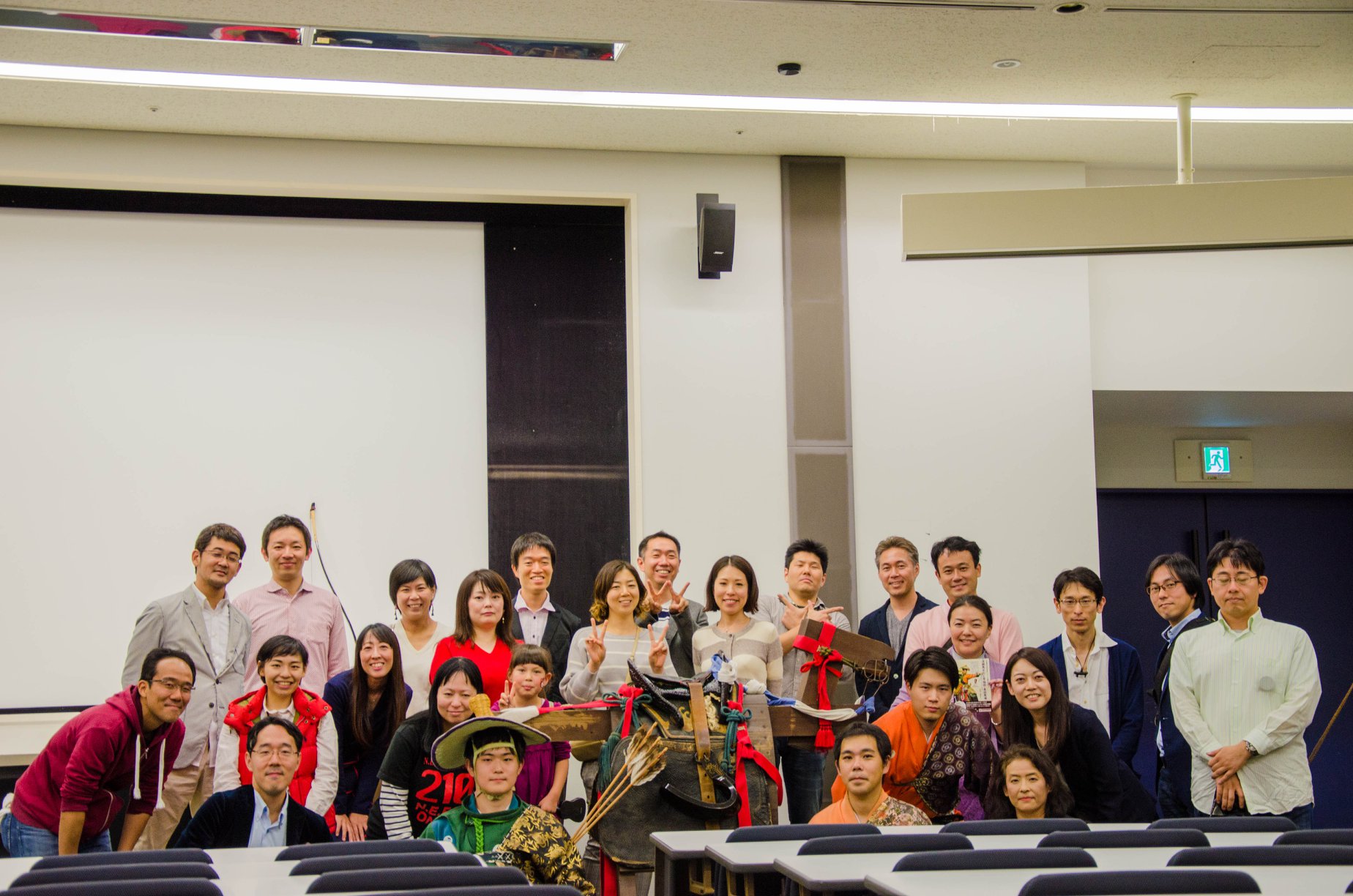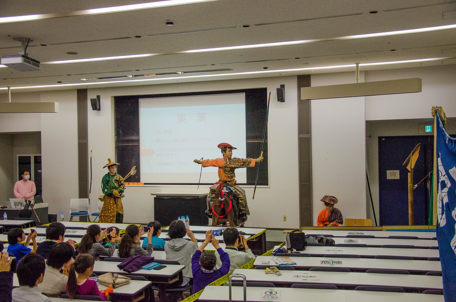 2018年10月21日(日)稲門祭にて、2002年次稲門会主催イベント「流鏑馬文化と早稲田・高田馬場 ~保存文化とその未来について~」を開催いたしました。流鏑馬ゆかりの地である高田馬場・早稲田において修練を積み、各地で流鏑馬奉納に参加している校友・堀田祐介さん(2002年卒)による流鏑馬文化についての講演、校友・大友康太朗さん(2014年卒)ならびに現役学生・高橋大河さんとの保存文化の未来に向けた対談のほか、木馬による流鏑馬の実演も行いました。当日は老若男女問わず約100名の方にお越しいただきました。教室内の実演だったため音の反響が良く、弓矢で的を射た時の迫力は凄まじいものがありました。