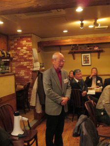 予選スタートとなる次回駅伝については、田中清司氏(1961年教育)から応援へのお礼とプロ化しているとも言える強豪校とのギャップ、吉田郁夫氏(1985年社学)から過去の例から現在の有望新人が、3年生になる2年後へ期待する発言があった。楽しい時間はまたたく間に過ぎ、次回サロン(2/4)の講師・多奈部純一氏(1974年商学)よりテーマ「岩崎四代」の予告のあと、板橋洋一氏(1977年政経)のリードで校歌を斉唱し、和やかに散会した。