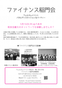 ファイナンス稲門会:5/16(木) Welcome Event