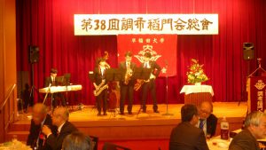 懇親会では、いつもお世話になっている正直屋グループさんの出張レストランのサービスでにぎりずしをはじめ和洋中盛りたくさんの料理を堪能、アトラクションゲストに迎えた早稲田大学ハイソサエティ・オーケストラのジャズバンド演奏を楽しみながら心地よい雰囲気の中で話が弾みました。