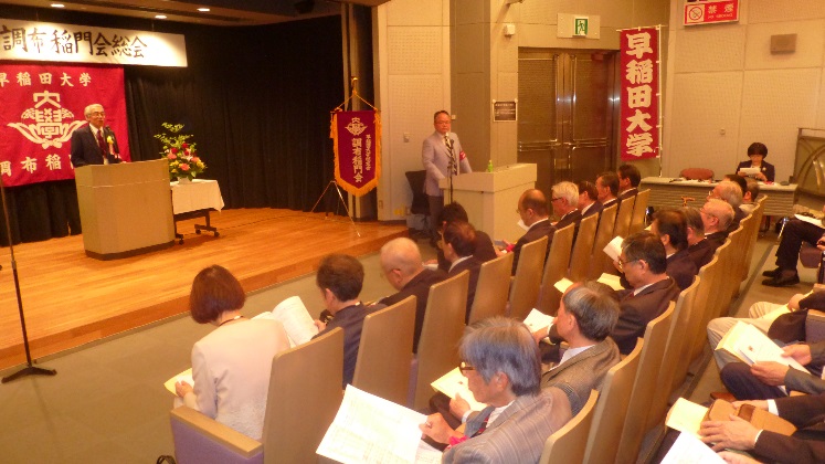 総会では岡田文男会長が「再来年2021年は調布稲門会創立40周年という節目となります。記念事業を検討中ですが、楽しみなイベントを企画したい。会員や市内の校友の皆さんも稲門会活動に楽しく参加できるよう活性化を図ってまいります」とあいさつ。