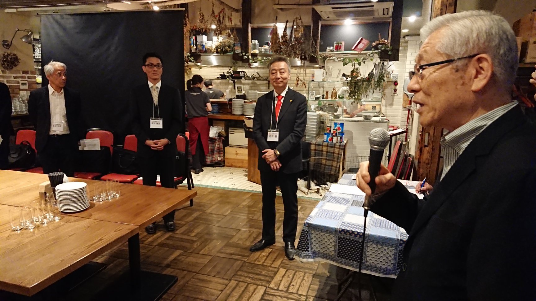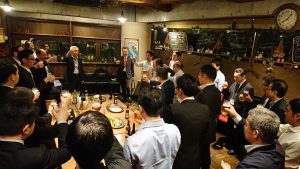 例年どおり、2分間程度で出席者全員が自己紹介スピーチ。企業勤務が一段落し、独立に向けた準備を始めるミドル層の方々、診断士登録を機にコンサルティング会社に転職して新しいステージに進んだ方々など、バックグラウンドはさまざまですが、校友会に加わることでまた母校とつながれることを懐かしむ声も。