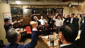 懇親会が始まるころには、皆さん、診断士稲門会のフラットな雰囲気に溶け込み、時間をオーバーして歓談の輪が広がりました! 締めの校歌斉唱では、偶然にも参加者の1割をグリークラブ出身者が占めていたこともあり、張りのある声が会場いっぱいに広がりました。
