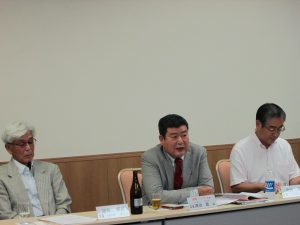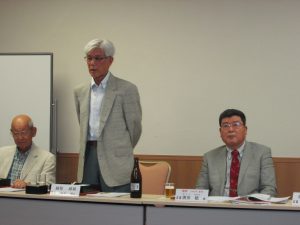 台風の傷跡の復旧の最中、晴れて酷暑が再来した2019年9月17日午後6時から武蔵小杉「ユニオンビル」にて、開催された。越智威雄会長(1966年理工)の乾杯、綱川健一幹事長(1973年社学)の司会進行で始まり、稲門祭(10月20日)、川崎校友大会(10月26日)の広報、県大会(厚木)参加者の追加募集、市役所稲門会との交流、秋の歴史散策、早慶ゴルフなどの予定の報告が行われた。