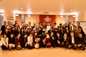 2次会はそのまま会場へ居残り実施ということもあり、53人が参加し、前会長宮武みきさんの乾杯で開会、更なる懇親の時間を過ごし、最後は全員輪になって肩を組んでの『紺碧の空』。同期リーダーの下、ワセダの地でワセダならではの盛り上がりを満喫し、前副会長大友教央君のごあいさつにて散会となりました。