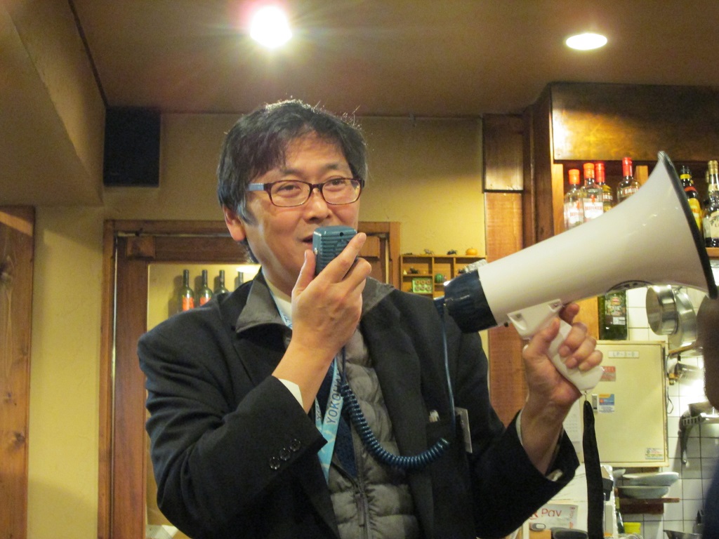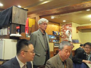 後半に綱川幹事長より、箱根駅伝の六郷橋付近での応援の準備や応援状況について話があり、吉田郁夫氏(1985年社学)からは、総括として区間ごとの解説が丁寧になされた。楽しい時間はまたたく間に過ぎ、最後に恒例の板橋洋一氏のリードで校歌を斉唱し、和やかに散会した。