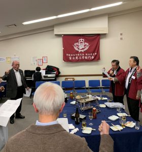 次いで、堀内好浩顧問(兵庫大学教授)が乾杯の音頭を取り、歓談に移りました。堀内さんは2月9日に、ふじみ野市のエコパにおいて「地域の歴史」講演会を開きます。