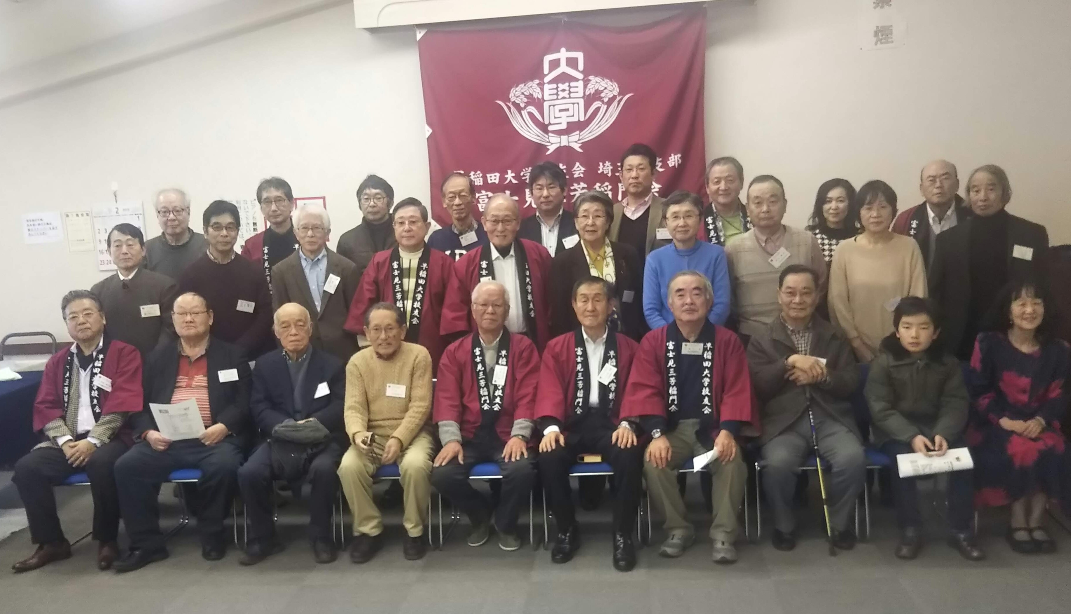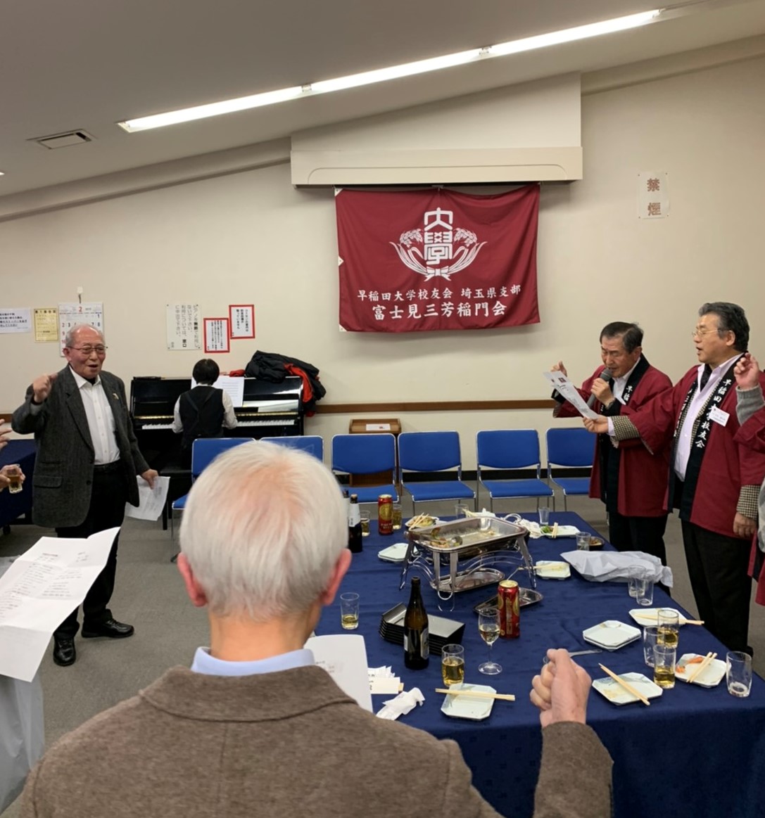 2020年2月1日、富士見三芳稲門会恒例の新年会が、みずほ台コミュニティセンター2階の集会室で開かれました。会員や会員の奥さまなど29人が参加し、会員相互の親睦を図りました。