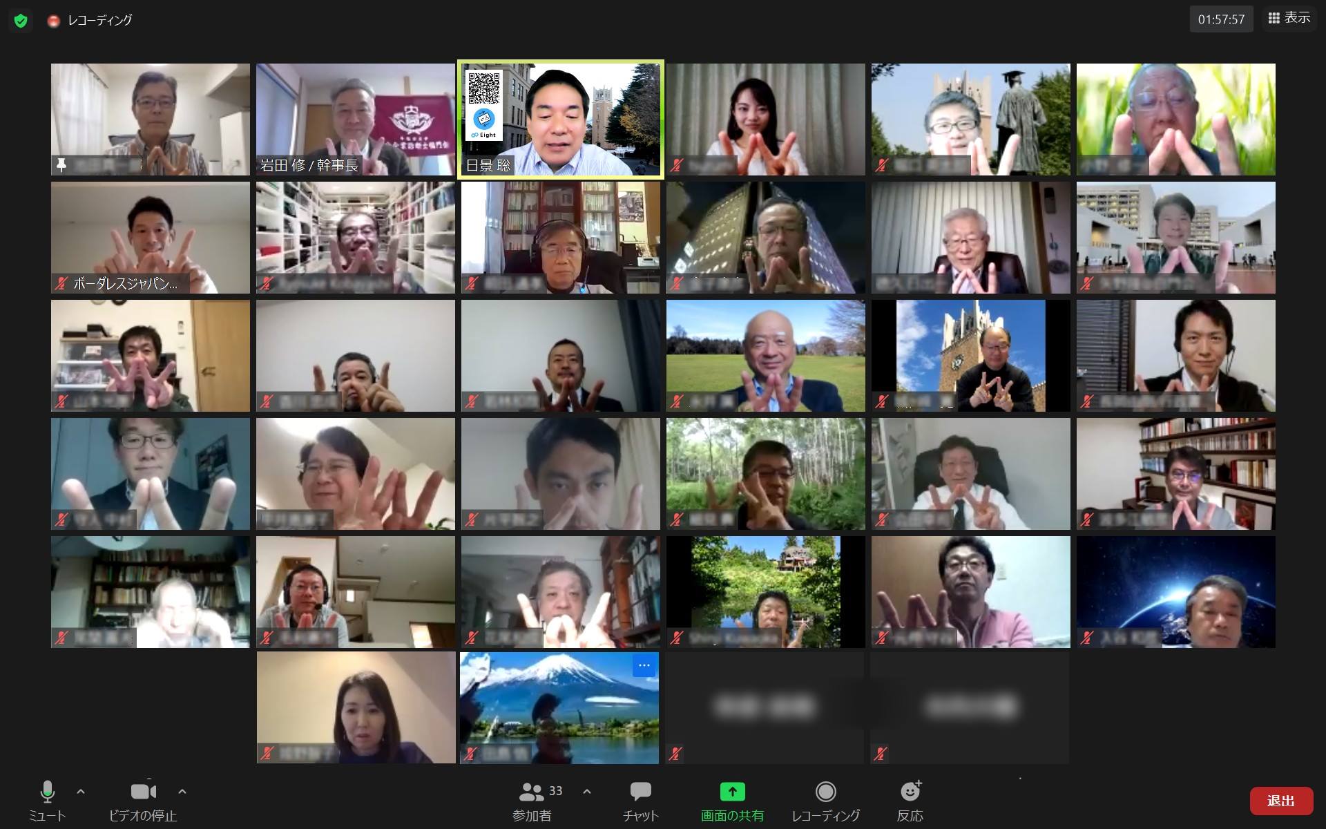 今回はオンラインのため、残念ながら懇親会は行わず、パソコンのスピーカーから流れる「都の西北」を聴き、歌い、閉会となりました。コロナ禍が収束し、会員全員で杯を交わせる日が来ることを願わずにはいられない総会となりました。