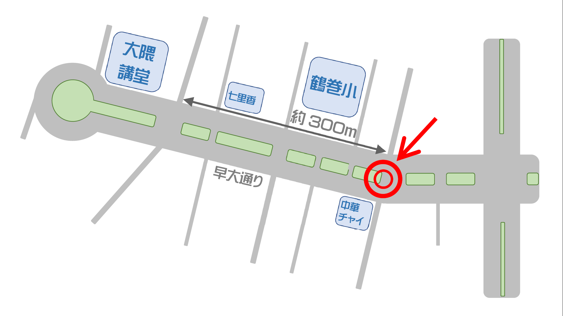 出店場所:早大通り100円ローソン前交差点付近(下記の地図をご参照下さい)