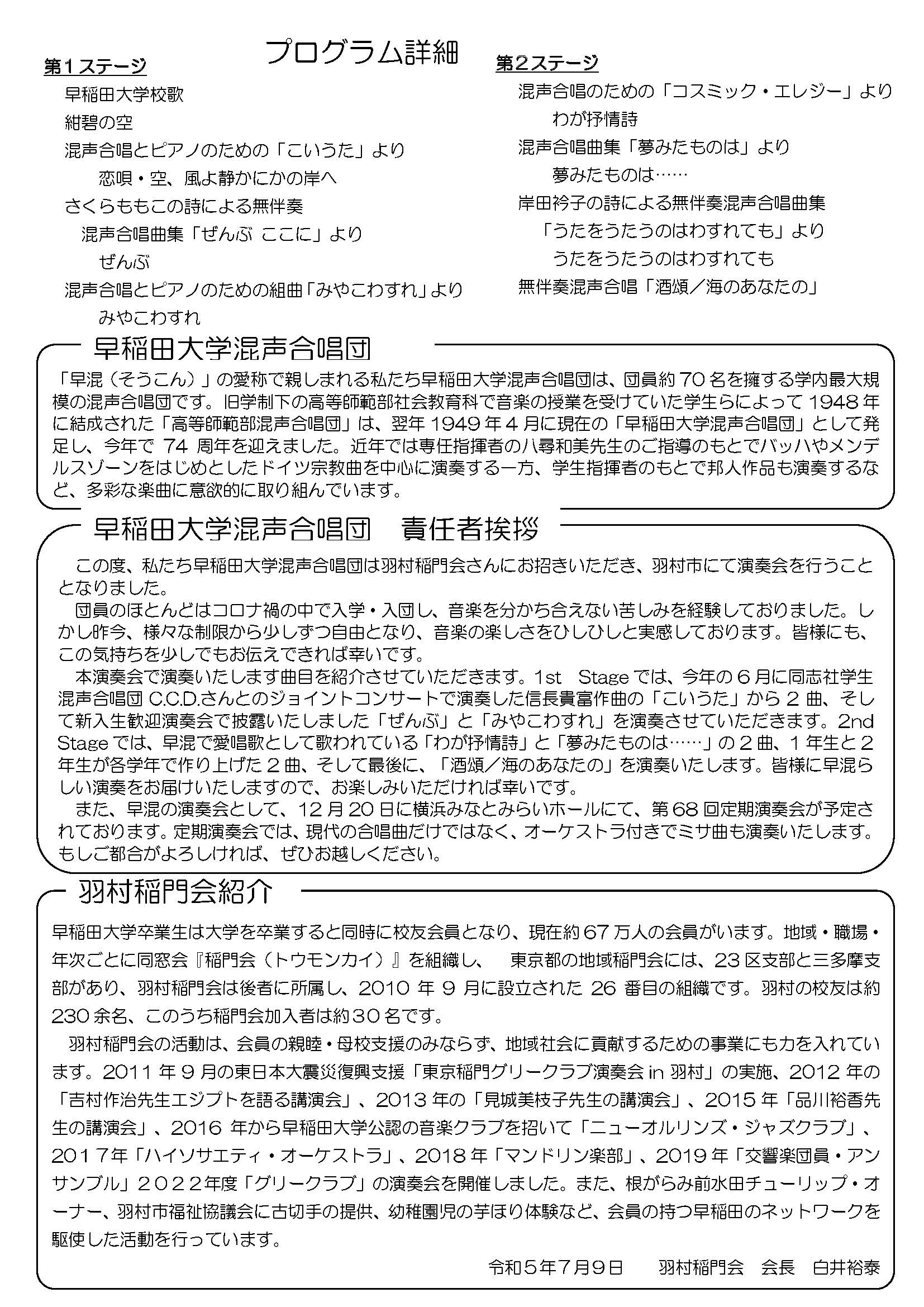 「第10回 羽村稲門会 公演 早稲田大学混声合唱団演奏会 コーラスの調べ in 羽村」を開催いたします。