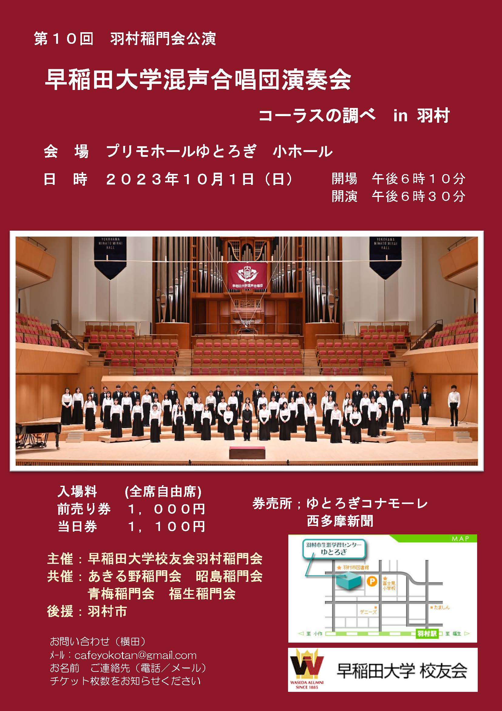 羽村稲門会:公演「早稲田大学混声合唱団演奏会」10/1(日)