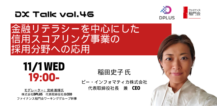 ファイナンス稲門会 :オンラインセミナー「金融リテラシーを中心にした信用スコアリング事業の採用分野への応用~ファイナンス稲門会 DX Talk Vol.46」開催