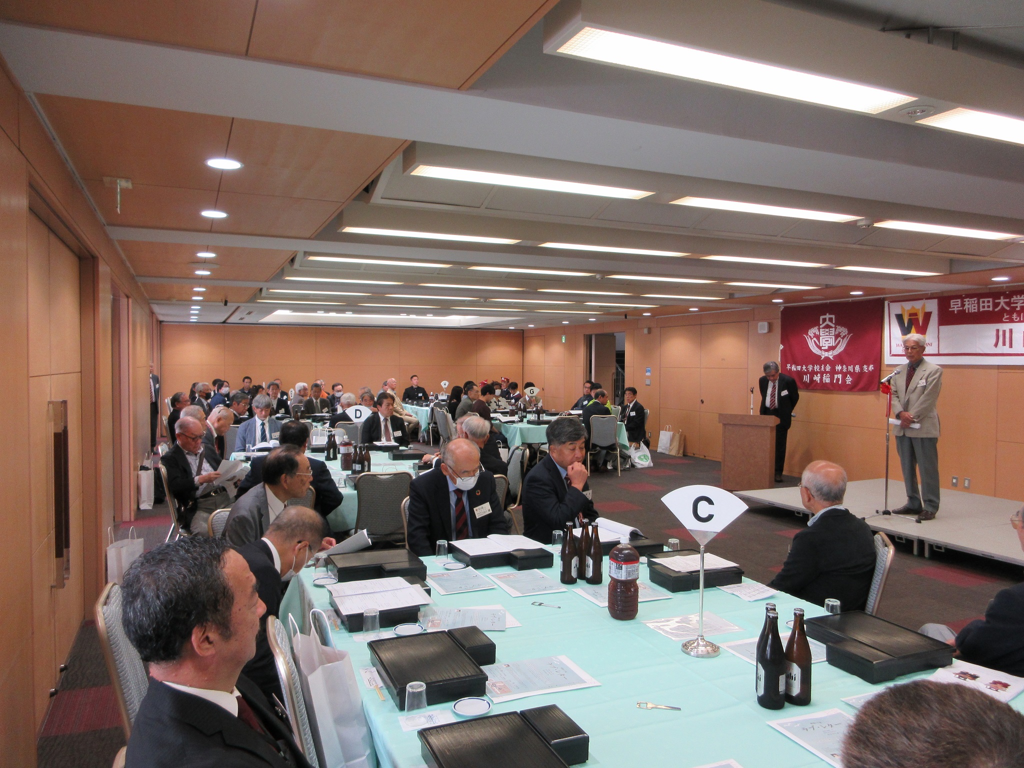 「コロナ禍の勢力は減退したものの、未だ終焉(しゅうえん)していませんが、早稲田大学からの来賓、県下各稲門会や川崎三田会等のゲストをお招きして大会を開催できました。土産も用意してあり、ぜひ楽しんで下さい」。