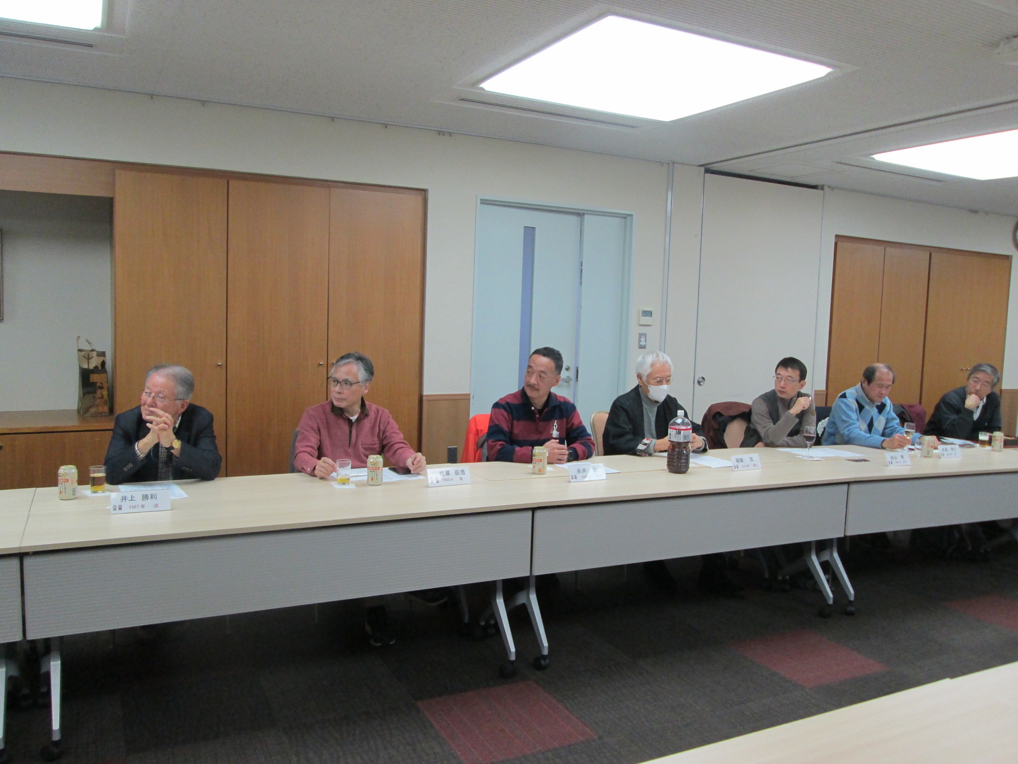 急に寒くなった11月18日(土)12時、ワセダサロン11月例会が武蔵小杉「ユニオンビル」で開催された。21人が集い、今回から新体制の板橋幹事長(1977政経)の司会進行と井上会長(1969法研)の乾杯で始まった。