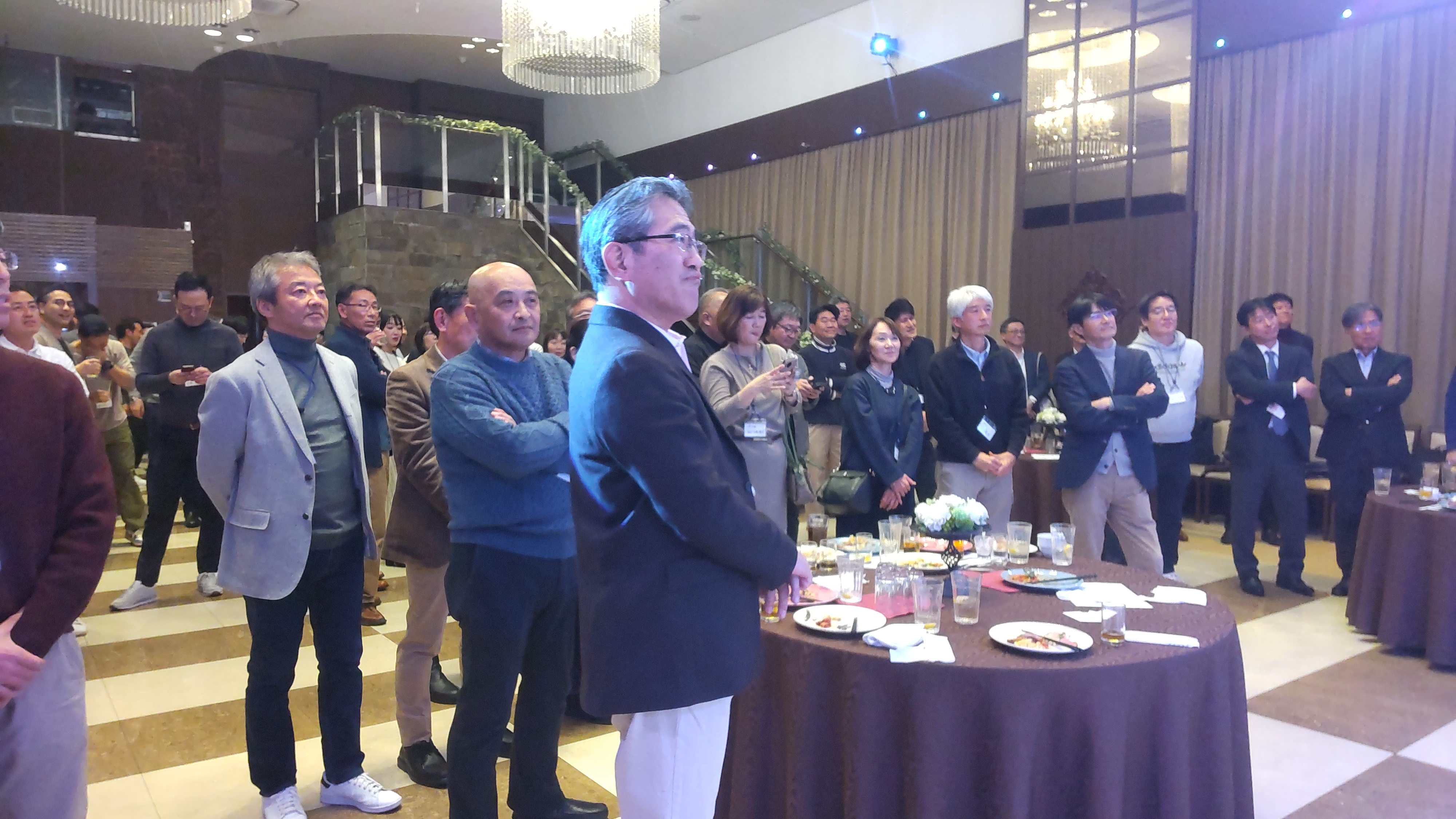 続いて18時からは新宿の特設会場にて、40年にわたる卒業生たちが集結し、世代を超えた交流会を開始しました。全国より100人超の会員たちが集まり旧交を温めるとともに、50周年記念イベントをリーガロイヤルホテル東京で開催することを宣言しました。
