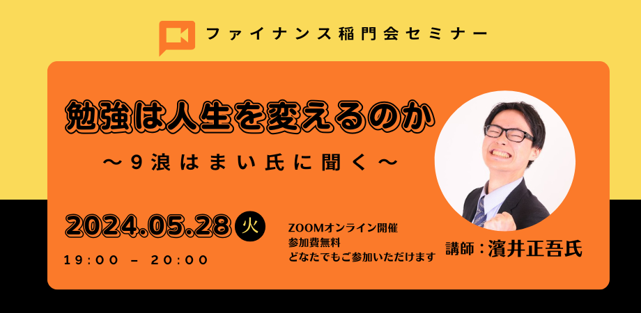 ファイナンス稲門会:オンラインセミナー「勉強は人生を変えるのか~9浪はまい氏に聞く~」開催