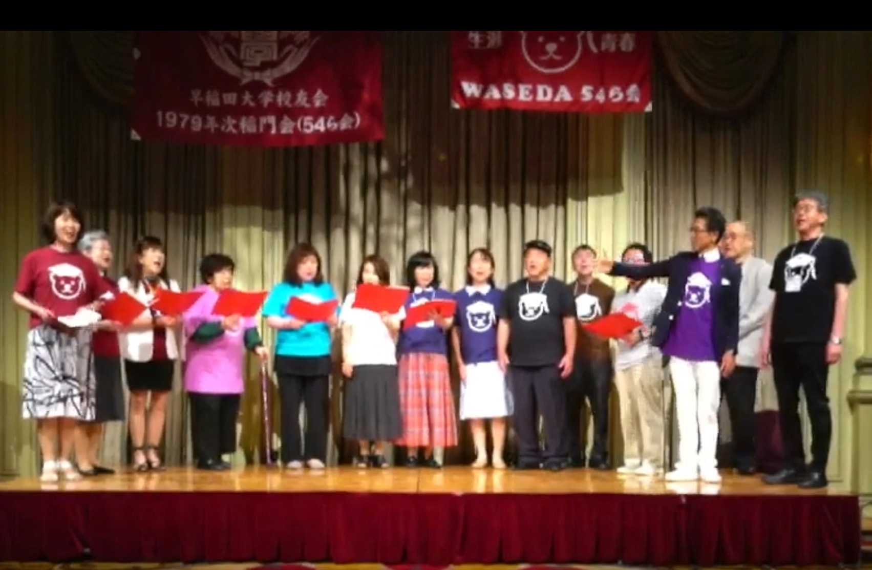 ④皆で唄おう1:TKB54シンガーズ。在学中ヒットソングメドレー10曲を参加者全員で歌い踊る。