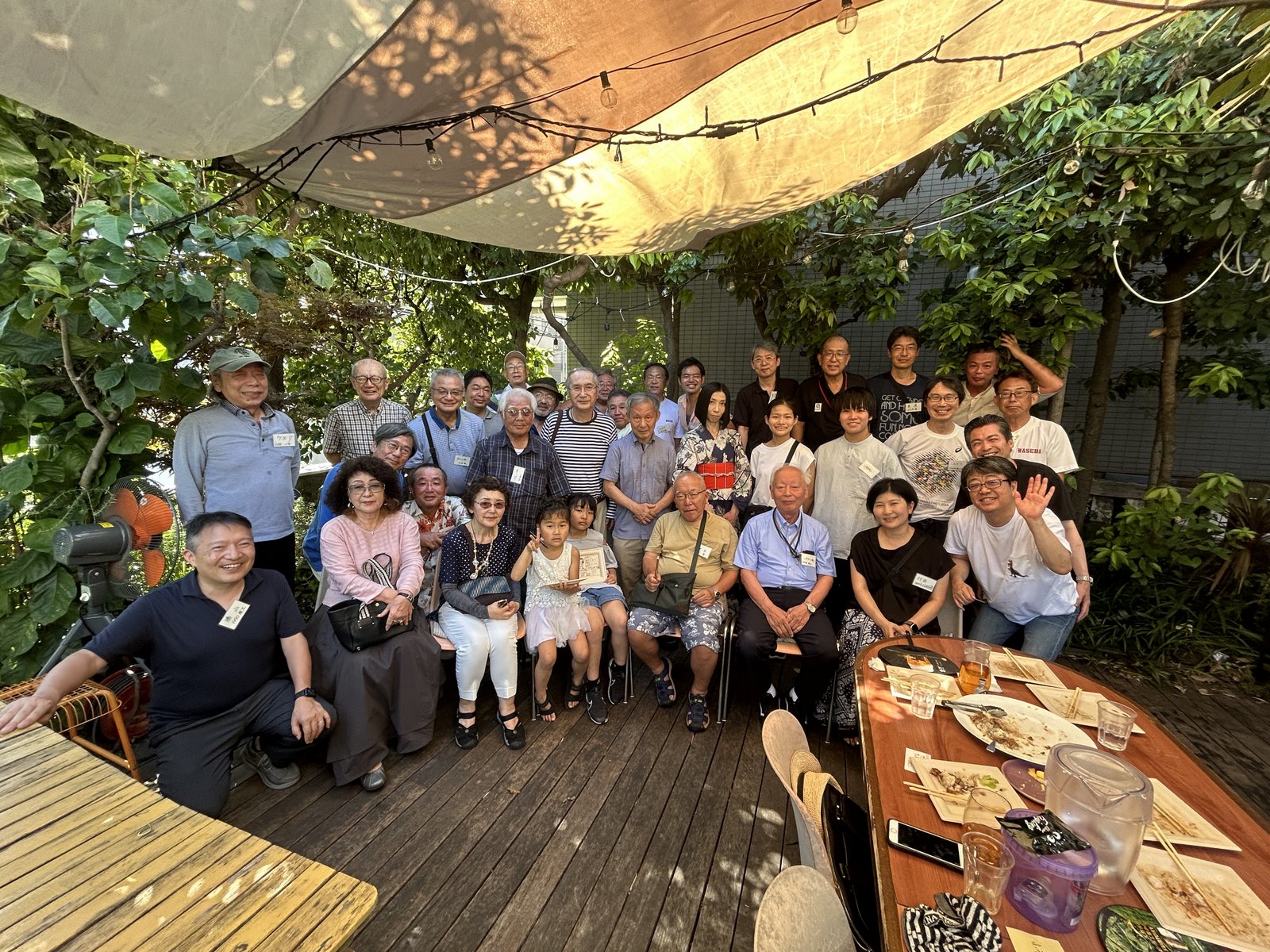 残暑が居座る2024年8月24日(土)、品川区東大井の閑静な住宅街にたたずむ『GROVE cafe & green』を貸し切り、品川稲門会「夏のBBQ」を開催しました。この日は目黒、港、世田谷の各稲門会から計6人をお迎えし、保育園児から高校生までの子ども4人を含む総勢35人が参加して大盛況。笑顔や笑い声が絶えないひとときは、交流の輪を広げるまたとない機会となりました。お店は民家風で、店内につながるテラス席には2台のBBQグリルが並び、汗だくになりながら大量のお肉・野菜を焼き続ける校友も。焼きたての美味しいお肉とお酒を手に、時が経つのも忘れて早稲田の杜での思い出や近況を語らいました。このBBQは、品川稲門会にご縁のある校友とご家族が一緒に参加して楽しんでもらうイベントです。コロナ禍を経て3年連続3回目となり、年を追うごとに参加者も増え、毎年恒例の行事となりつつあります。今回は参加できなかった方も、ぜひとも来年は参加してみてください。