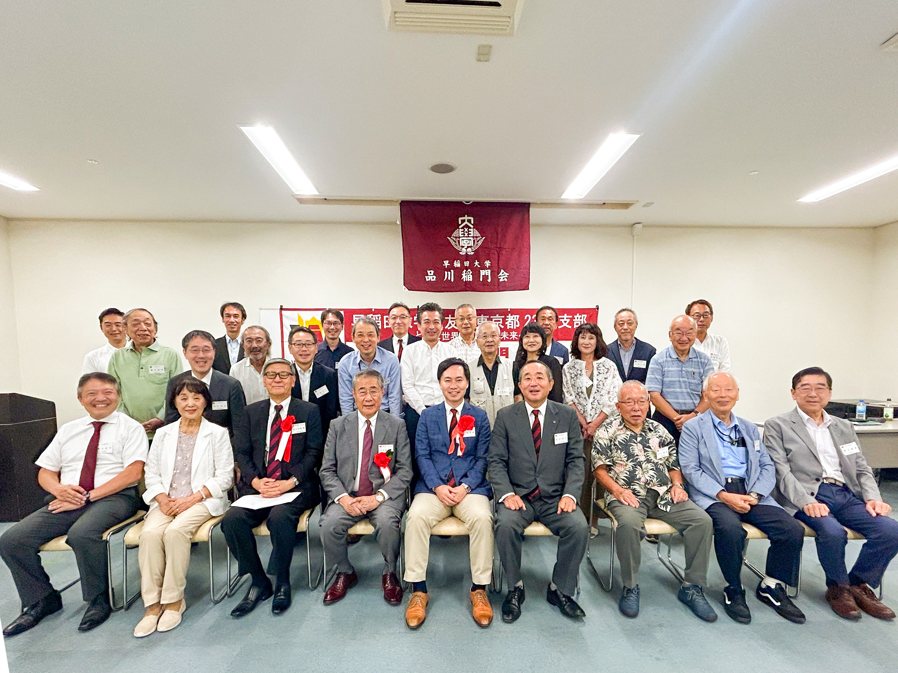 チンドン芸の後は、小林副会長から秋のウォーキング&グルメの会の案内があり、新入会員紹介と続きました。そして『われら品川稲門会』を歌い、木伏副幹事長のリードにより、早稲田生にとっての第二の国歌?『都の西北』歌い上げました。最後は、鈴木副会長による閉会の辞で、大盛会のうちにお開きとなりました。