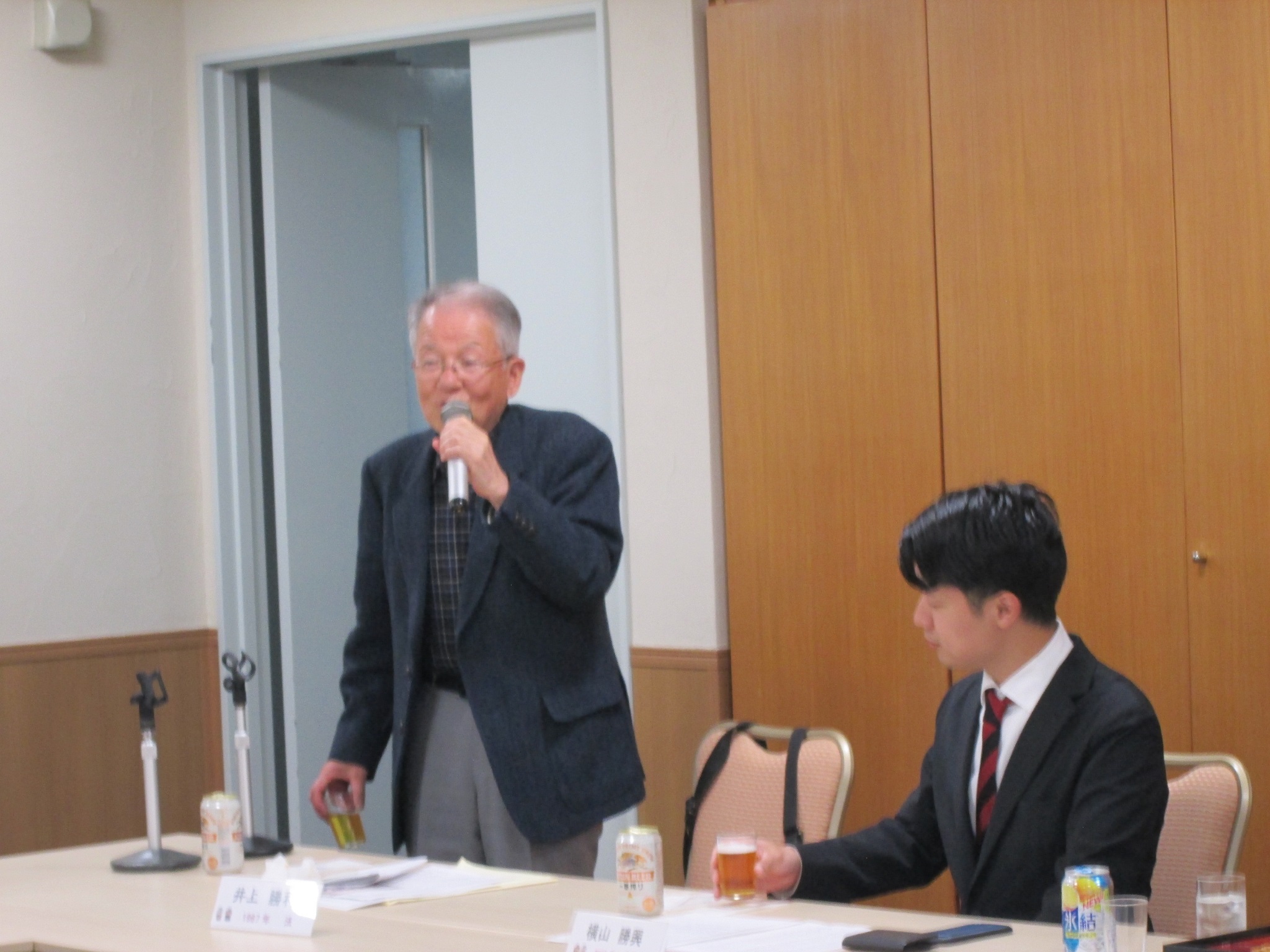寒さの戻った2025年3月15日(土)12:00から、武蔵小杉のユニオンビルでワセダサロン3月例会を開催した。23人が集い、山田幹事長代行(1975年理工)の司会進行、井上会長(1969年法研)の乾杯で始まった。会長は出席した「箱根駅伝健闘を祝う会」(2/15開催)の出席者集合と1993年から始まった小田原中継所(往路4区・復路6区)に1位で入ってきた選手の足型(早稲田は6選手)の写真を配布、また同会で知り得た横山勝興君(早大4年(当時):スポーツ新聞会・麻生区在住)をサロンに招待、紹介した。
