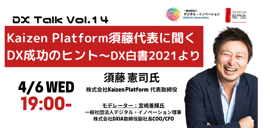 オンラインセミナー「Kaizen Platform須藤代表に聞く、DX成功のヒント ~DX白書2021より~ファイナンス稲門会DX Talk Vol.14」開催