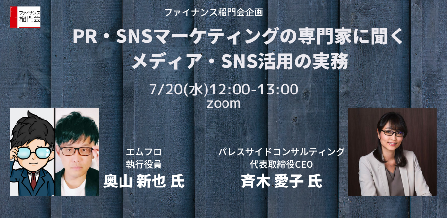 ファイナンス稲門会: オンラインセミナー「PR・SNSマーケティングの専門家に聞くメディア・SNS活用の実務」開催
