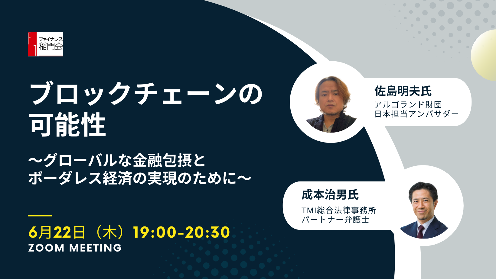 ブロックチェーンの普及を進めるAlgorand財団の佐島明夫氏と、セキュリティートークンの第一人者 成本治男弁護士が、その無限の可能性と日本の現状などについてお話しくださいます。