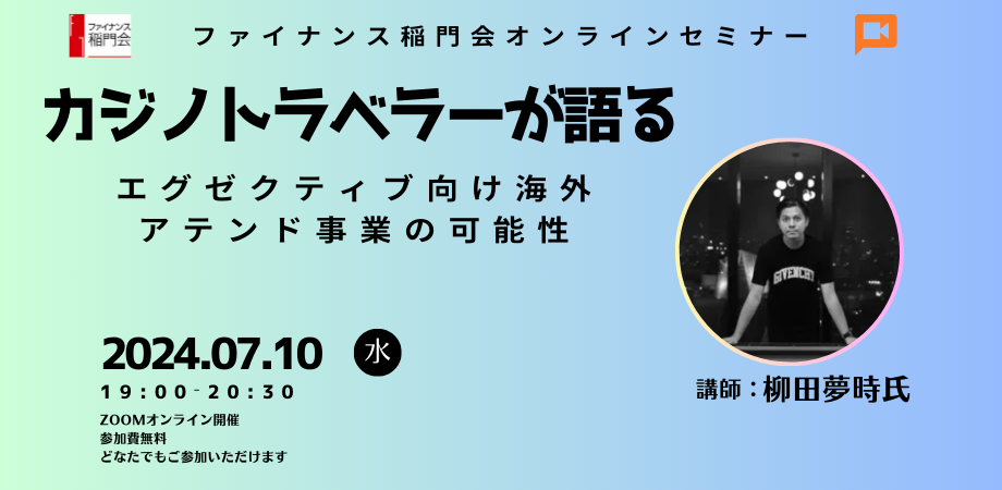 ファイナンス稲門会:オンラインセミナー「カジノトラベラーが語るエグゼクティブ向け海外アテンド事業の可能性」7/10(水)開催