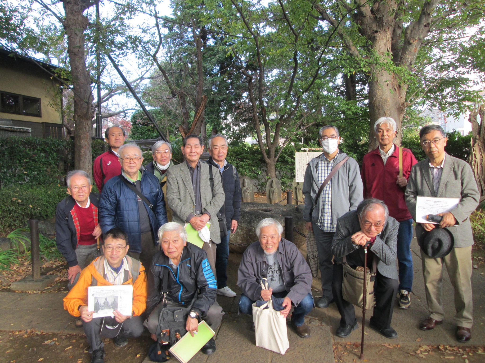 2024年11月10日(日)、少し肌寒い薄曇りの14時、南武線武蔵中原駅に参加者のうち12人が集合した。いつものように事前に調べた資料を配布し、説明してからバスで川崎市宮前区の影向寺(ようごうじ)遺跡に向かう。影向寺は7世紀後半に開かれたとされ、古代の役所跡で国指定史跡の「橘樹官衙(たちばなかんが)遺跡群」内にあるが、未確認の遺構が多くあるのではと、考えられている。