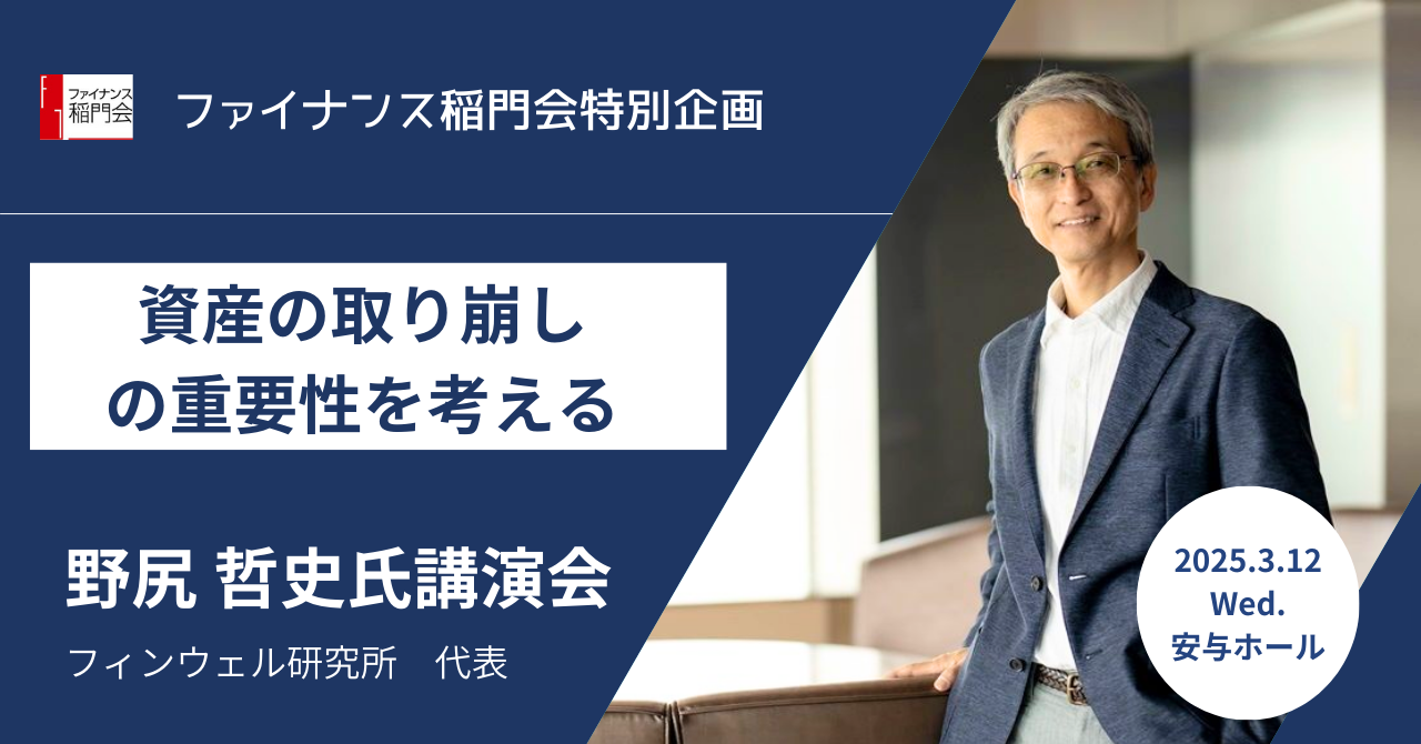 ファイナンス稲門会:対面セミナー「野尻哲史氏特別講演~資産の取り崩しの重要性を考える」3/12(水)開催