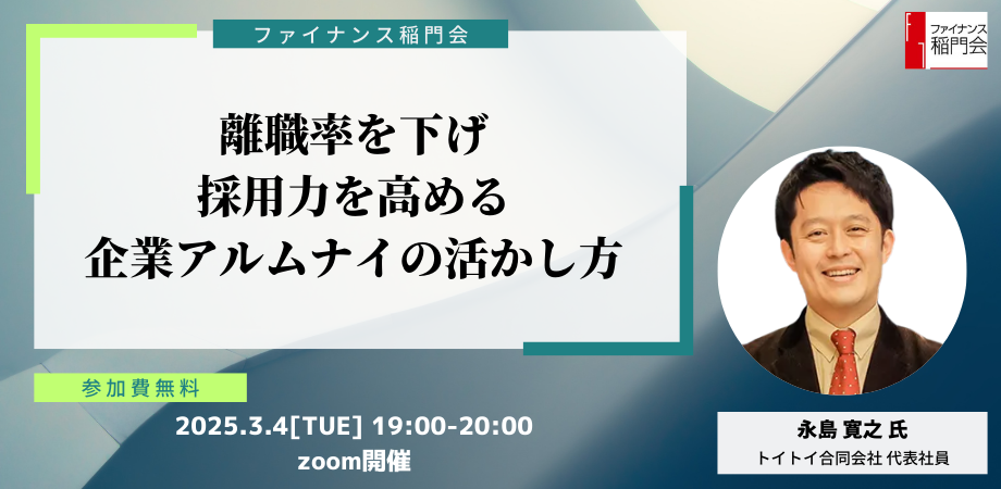 ファイナンス稲門会:オンラインセミナー「離職率を下げ、採用力を高める、企業アルムナイの活かし方」3/4(火)開催