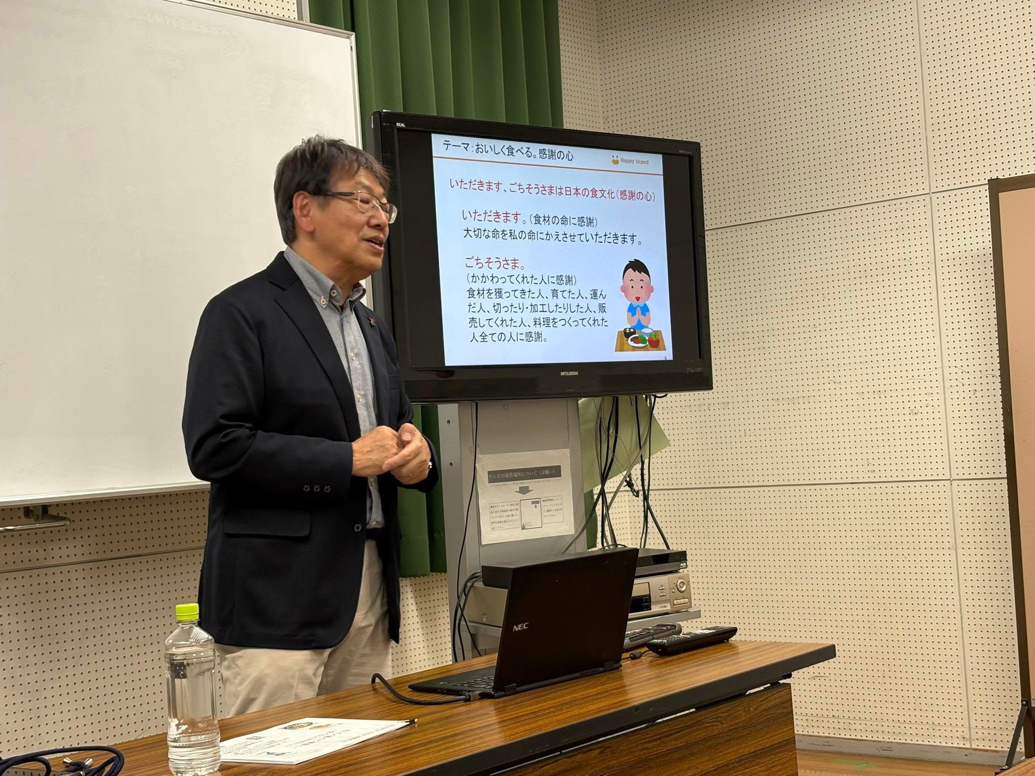 「私たちは食べたものだけからできている」「和食を食べよう!朝ごパンより朝ごはん」「食べることは生きること」「いただきます。ごちそうさまに込められた感謝の心」「目鼻耳口は脳の出先機関!刺激しないと脳は休んじゃう」「野田稲門会はドキドキがワクワクに変わる場所」「笑う角には福来たる。笑いは最高の免疫力アップ」などなど、目から鱗のお話に参加者全員なるほど!と「共感」しました。