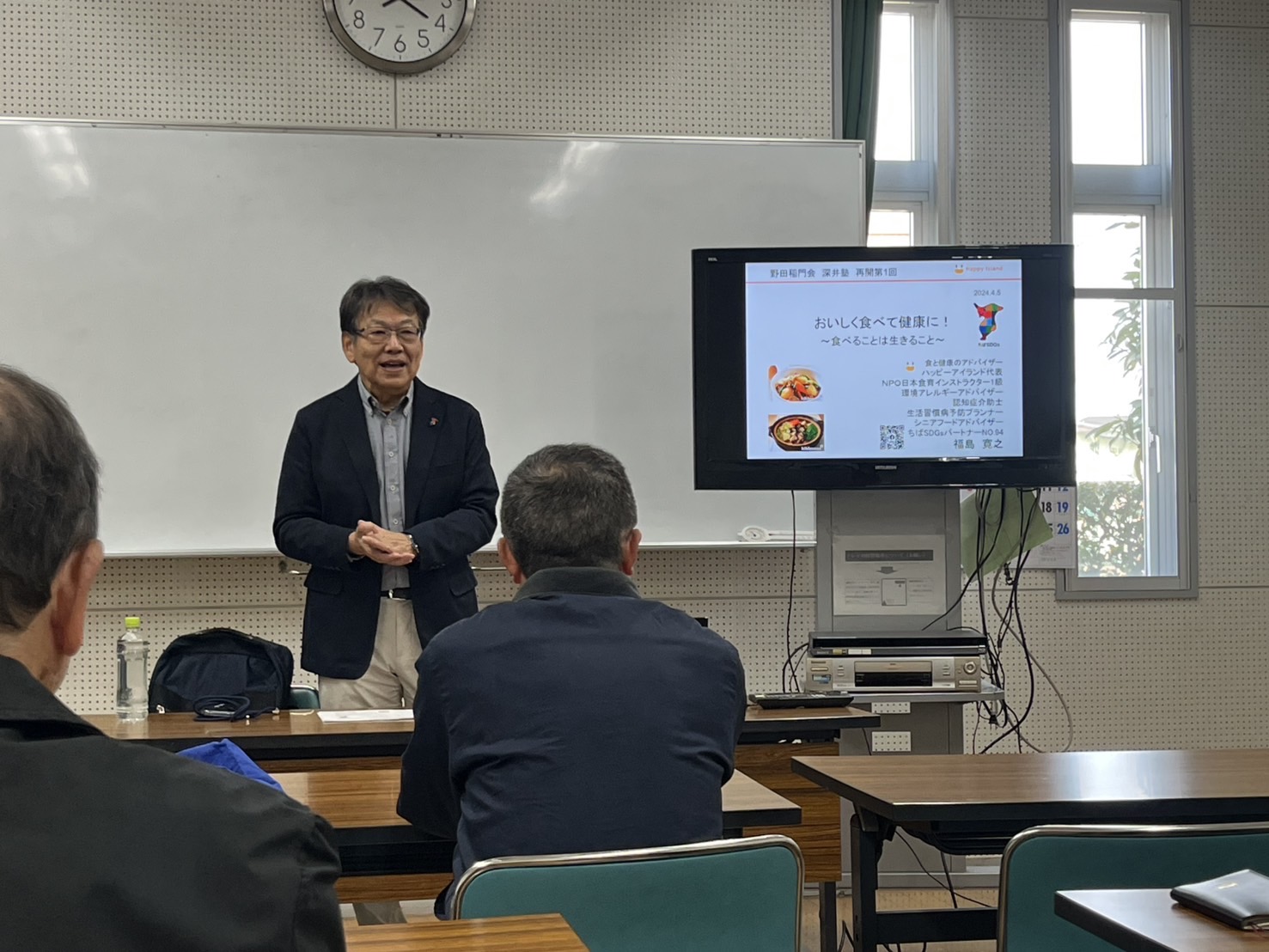 「深井塾」とは、野田稲門会の「深井順一郎先生(1961年理工)」にちなんで名づけられた野田稲門会独自の自主勉強会です。一時休止していましたが2025年4月5日(土)に野田市南部梅郷公民館講座室にて再開第1回が開かれました。