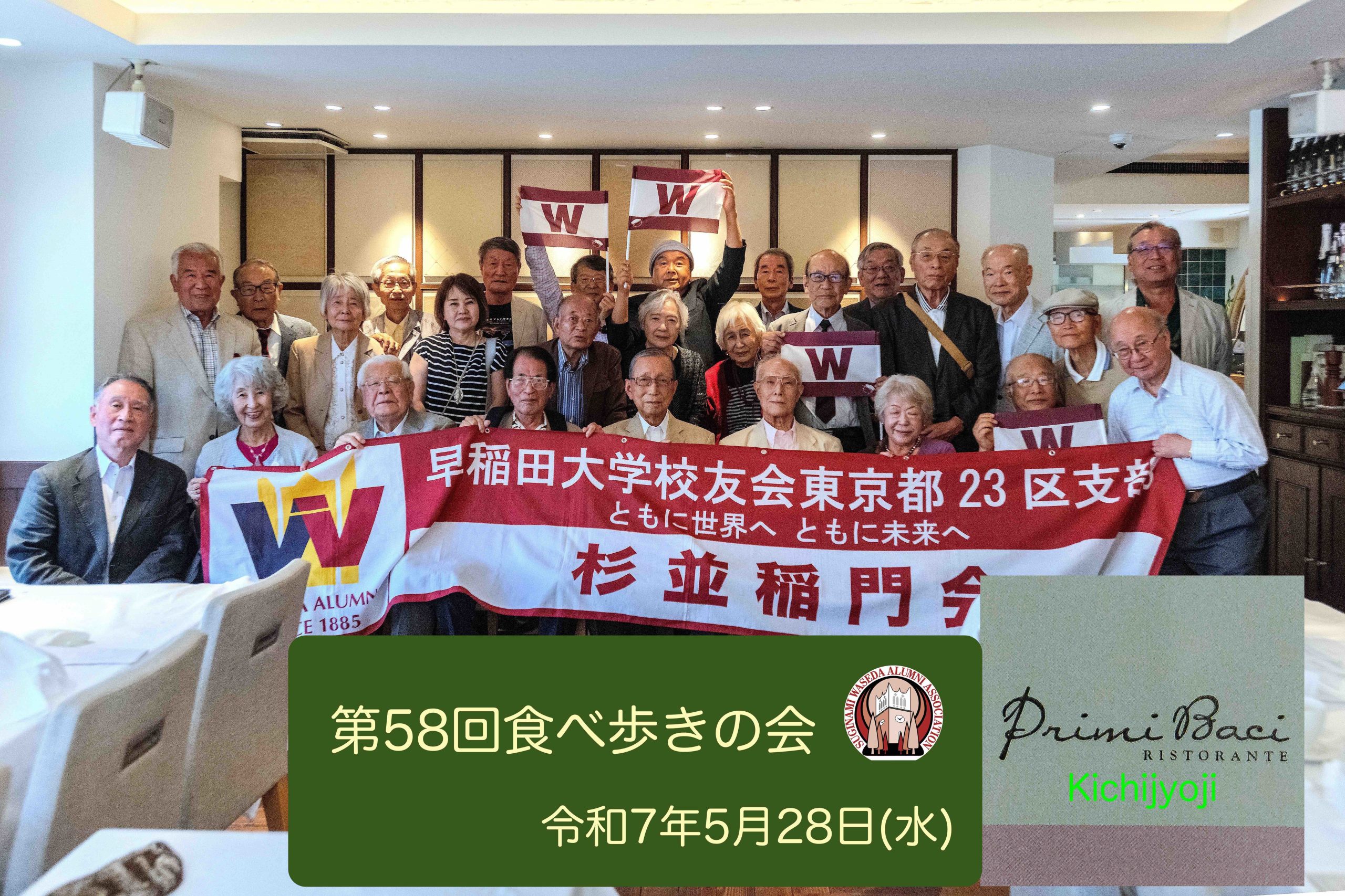 2025年5月28日(水)、「第58回食べ歩きの会」が開催されました。今回の会場は、井の頭公園の緑に囲まれた癒やしのレストラン「プリミ・バチ」です。店内は明るくお洒落なお店でした。参加者28人が揃ったところで、会はスタート。当会代表に続いて、長谷川将名誉会長のごあいさつ、石田順康氏の乾杯の後、料理が運ばれてきました。―季節のアミューズ・前菜・小柱とカラスミのパスタ・国産牛のホホ肉の煮込み・デザート。料理はどれも美味しく、またワインに良く合うとのことで、皆さん充分満足されたようです。食事、懇談が一段落したところで、加藤健副会長の中締め、前坂靖弘氏の記念撮影後、散会となりました。今回は参加者が28人と第1回、第2回を除いて初めて30人を切り、やや寂しい会となりましたが、会員の高齢化が進んでおり、若い会員の加入が切に望まれるところです。