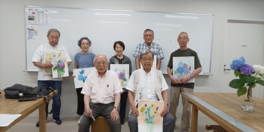 2025年6月18日(水)、阿佐谷地域区民センターにて、草花をテーマとしてスケッチ会を開催しました。アジサイ、ヒマワリ、バラ、リンドウ、デルフィニウムを題材としました。特にアジサイは細かい多数の花弁をどのように捉えて描くか苦労しました。最後に、講師の橋本先生から講評をしていただきました。参加者は8人でした。