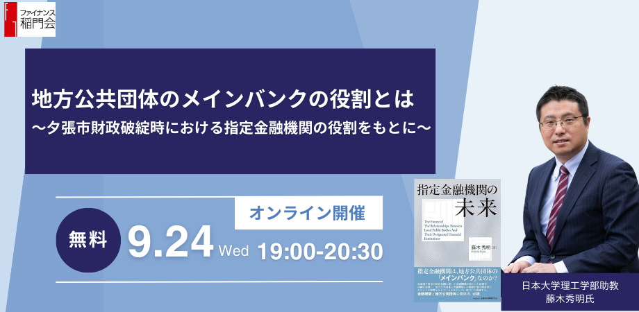ファイナンス稲門会:オンラインセミナー「地方公共団体のメインバンクの役割とは」9/24 (水)開催