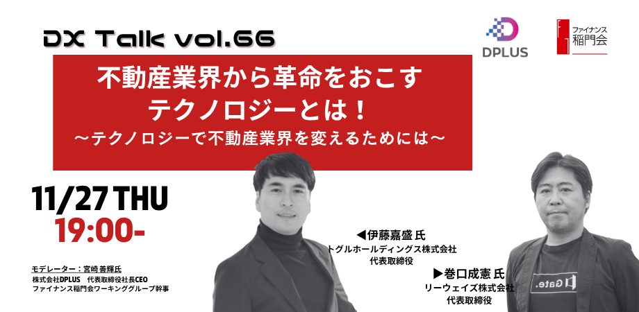 オンラインセミナー「DX-Talk vol.66 不動産業界から革命をおこすテクノロジーとは! 〜テクノロジーで不動産業界を変えるためには〜」11/27(木)開催