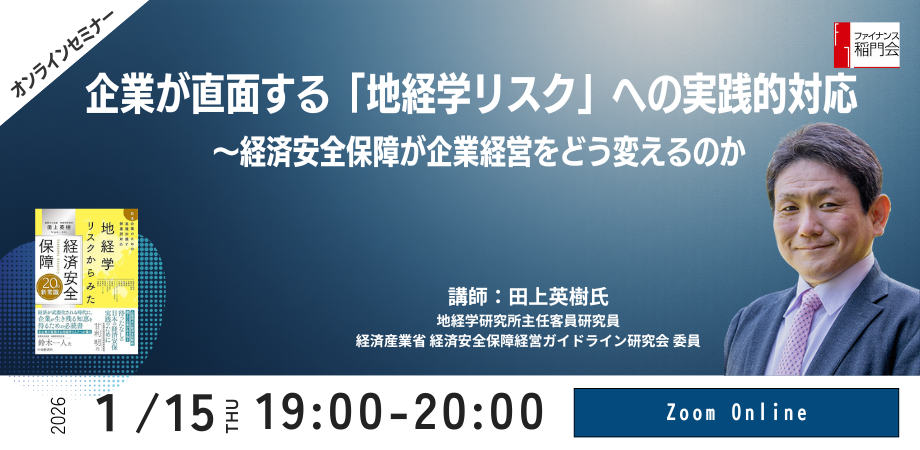 ファイナンス稲門会:「オンラインセミナー企業が直面する『地経学リスク』への実践的対応 経済安全保障が企業経営をどう変えるのか」1/26(月)開催