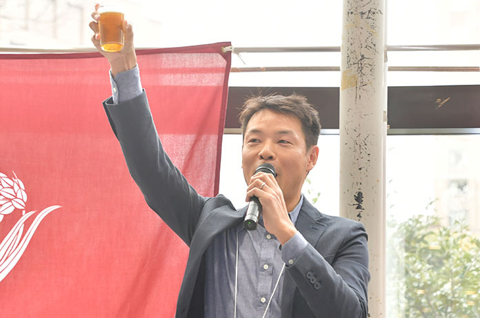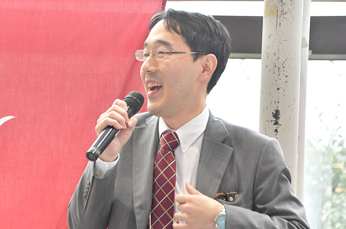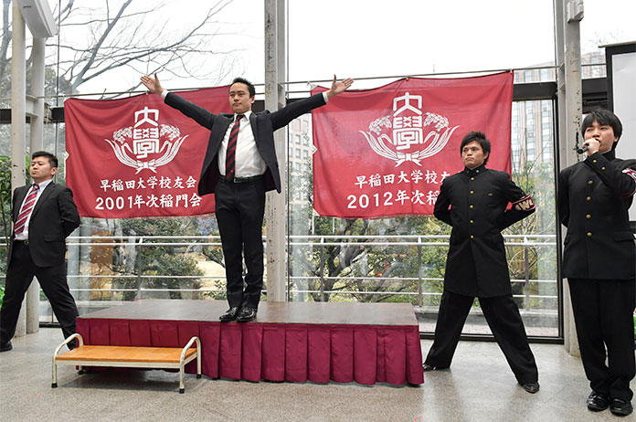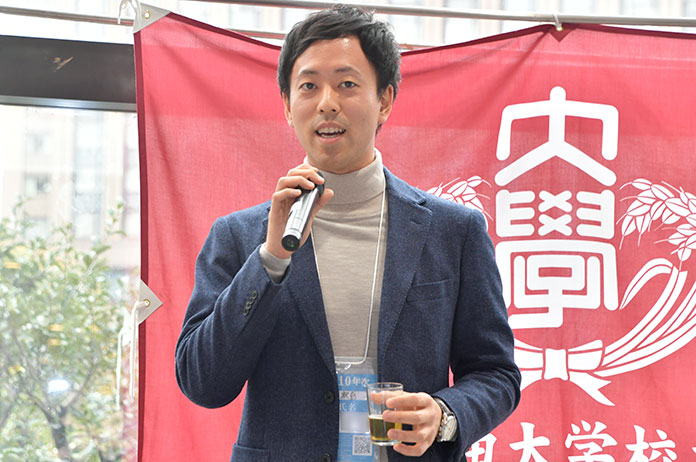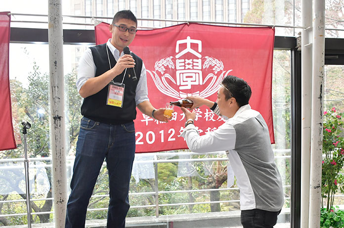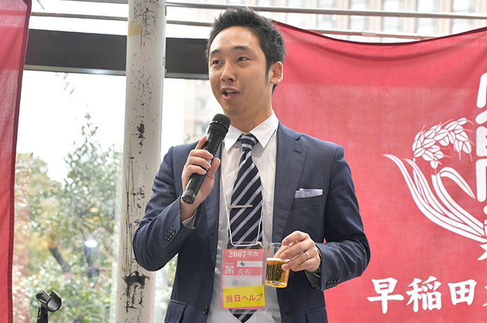 2017年1月の5年祭で新たに設立された、2012年次稲門会の会長による乾杯のあいさつでスタート。「先輩たちについていきながら、年次稲門会を盛り上げていきたい」と話しました。