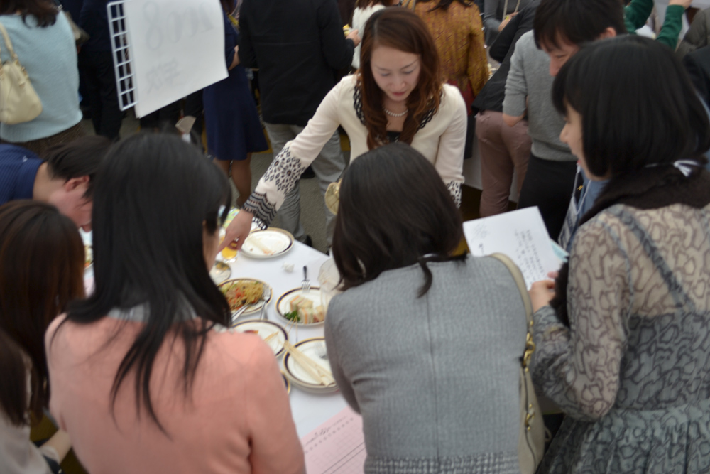 東京タワーを見上げる「東京プリンスホテル ビアレストラン ガーデンアイランド」。豪華なビュッフェとお酒がそろう立食パーティーに、徐々に人が集まります。