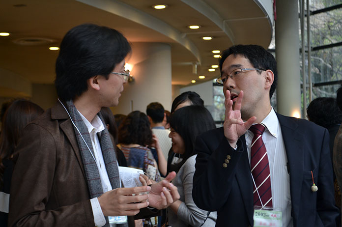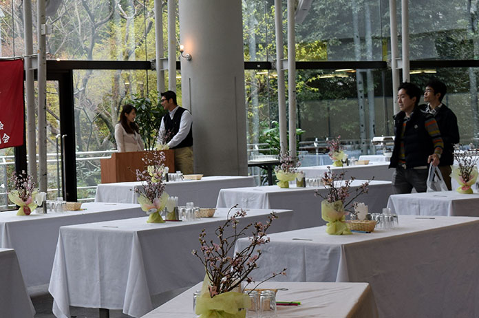 花見会が開催された4月2日(土)は、大学の入学式が行われた日でもありました。入学式を終えた新入生たちを横目に、若手校友たちが懐かしの学食(大隈ガーデンハウス)へと集まり始めました。