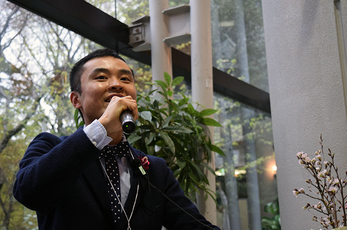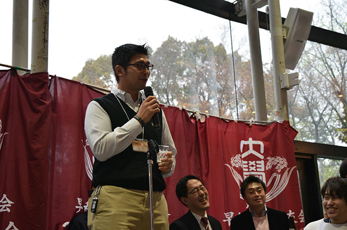 2016年1月の5年祭で新たに設立された、2011年次稲門会会長による乾杯のあいさつで合同花見会がスタートしました。