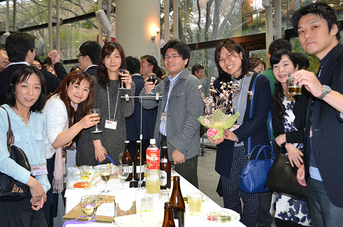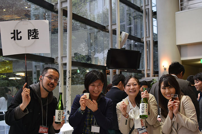 食事と会話を一通り楽しんだあとは、出身地ごとに分かれての歓談がスタート。会場には出身地域の地酒が用意され、参加者それぞれが自身にゆかりのある地酒を楽しみました。