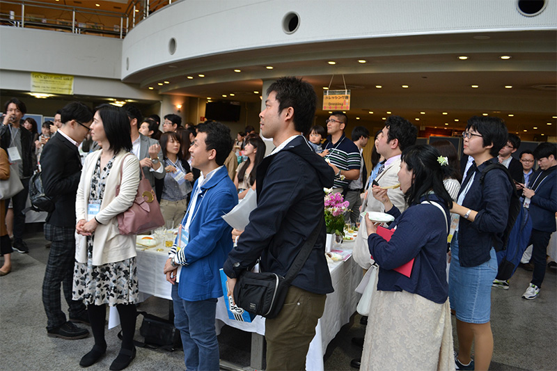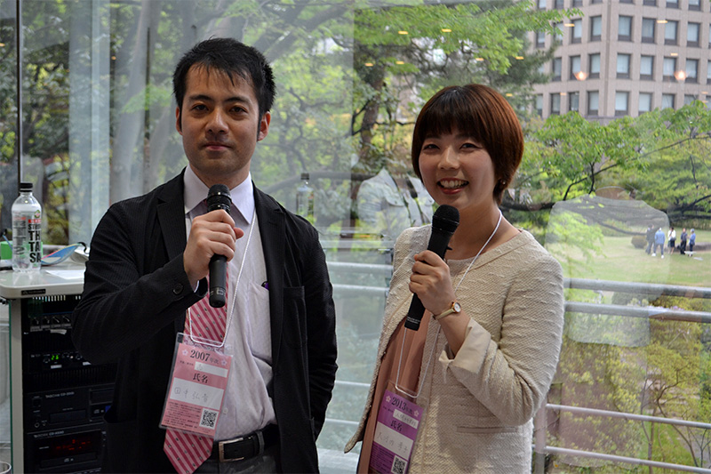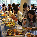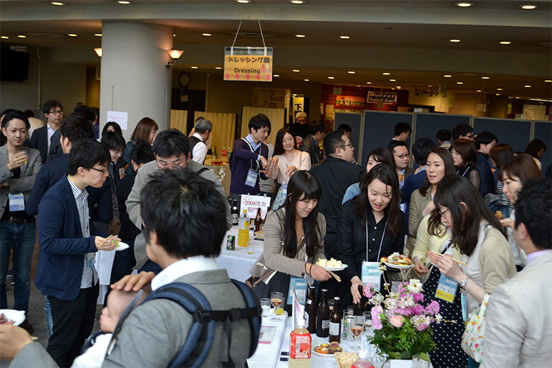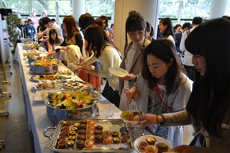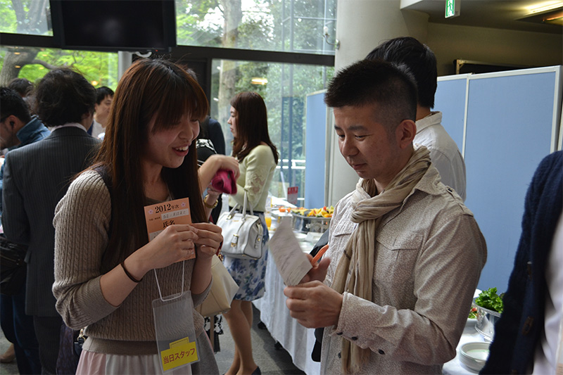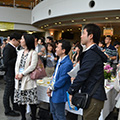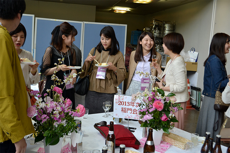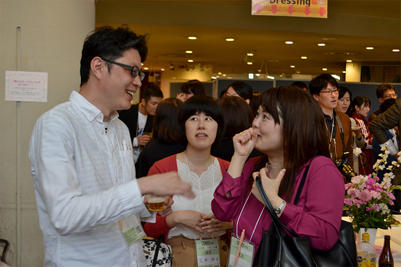 まずは、年次ごとのテーブルに分かれて立食と歓談。懐かしい旧友との再会や新たな出会いもあり、会場の各所から笑い声が聞こえてきました。